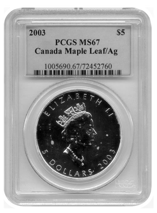 Up for your consideration is this very nice 2003 PCGS MS-67 Canadian 1 ounce Silver Maple.