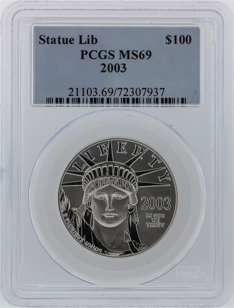 One 2003 PCGS MS69 $100 Statue of Liberty American Eagle Platinum Coin. PCGS Certified.