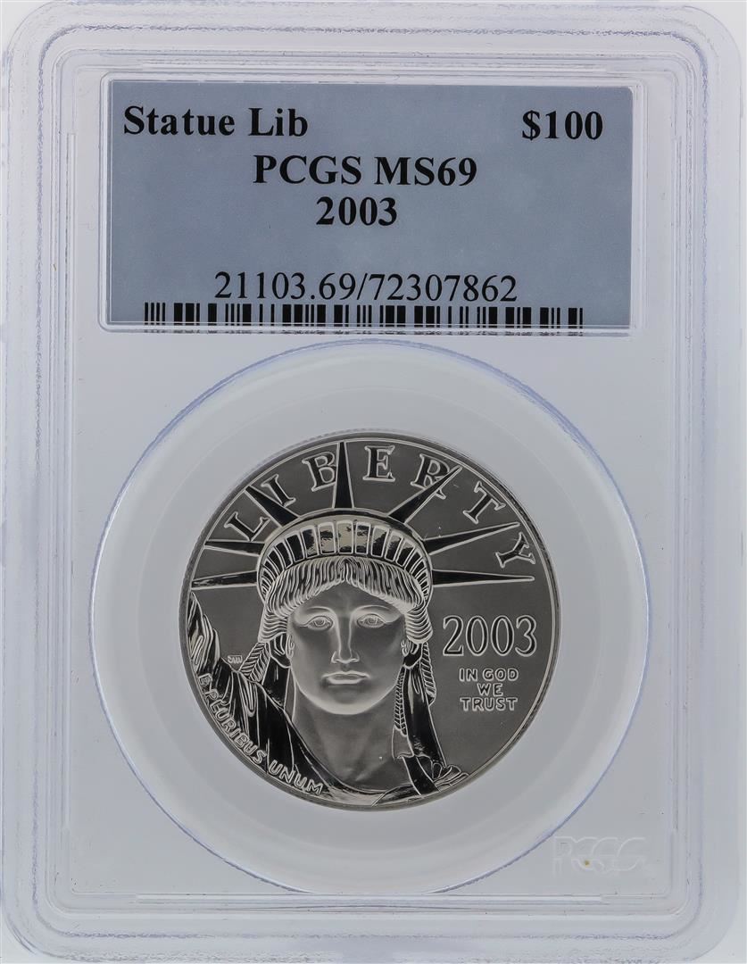 One 2003 PCGS MS69 $100 Statue of Liberty American Eagle Platinum Coin. PCGS Certified.