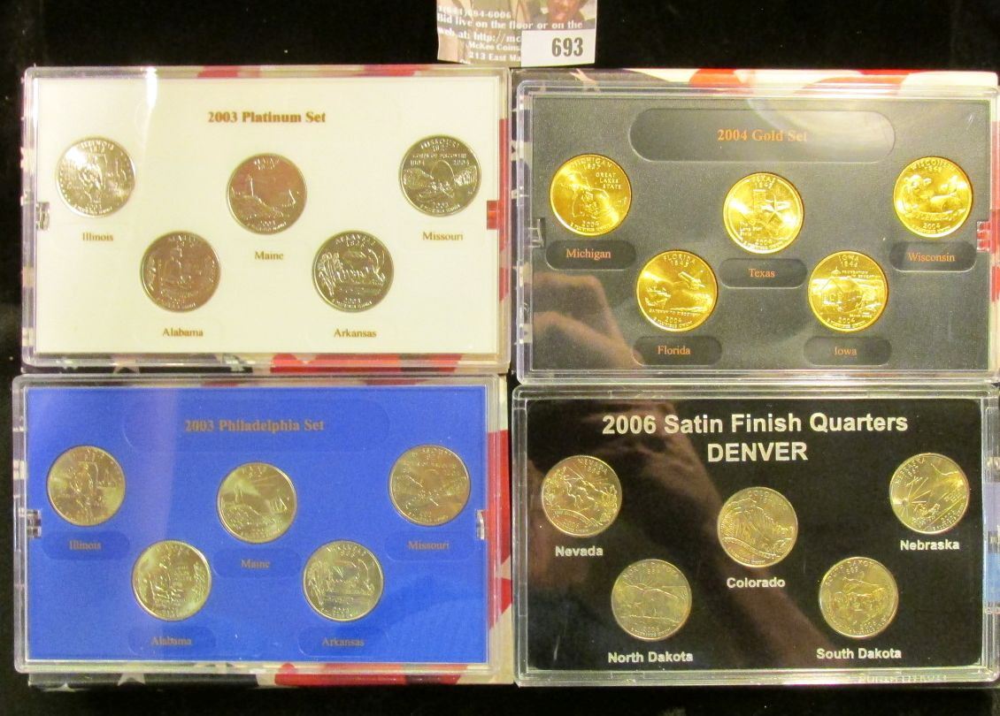 2003 PLATINUM EDEITION, 2004 GOLD EDITION, 2003 PHILADELPHIA EDITION, AND 2006 COMMEMORATIVE QUARTERS WITH A SATIN FINISH