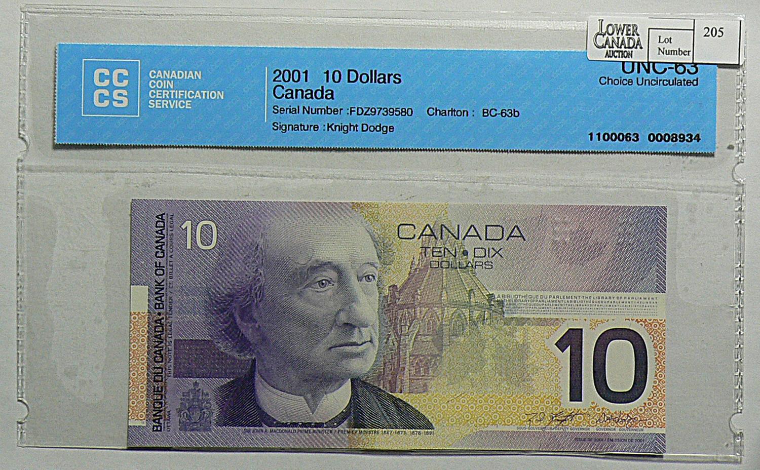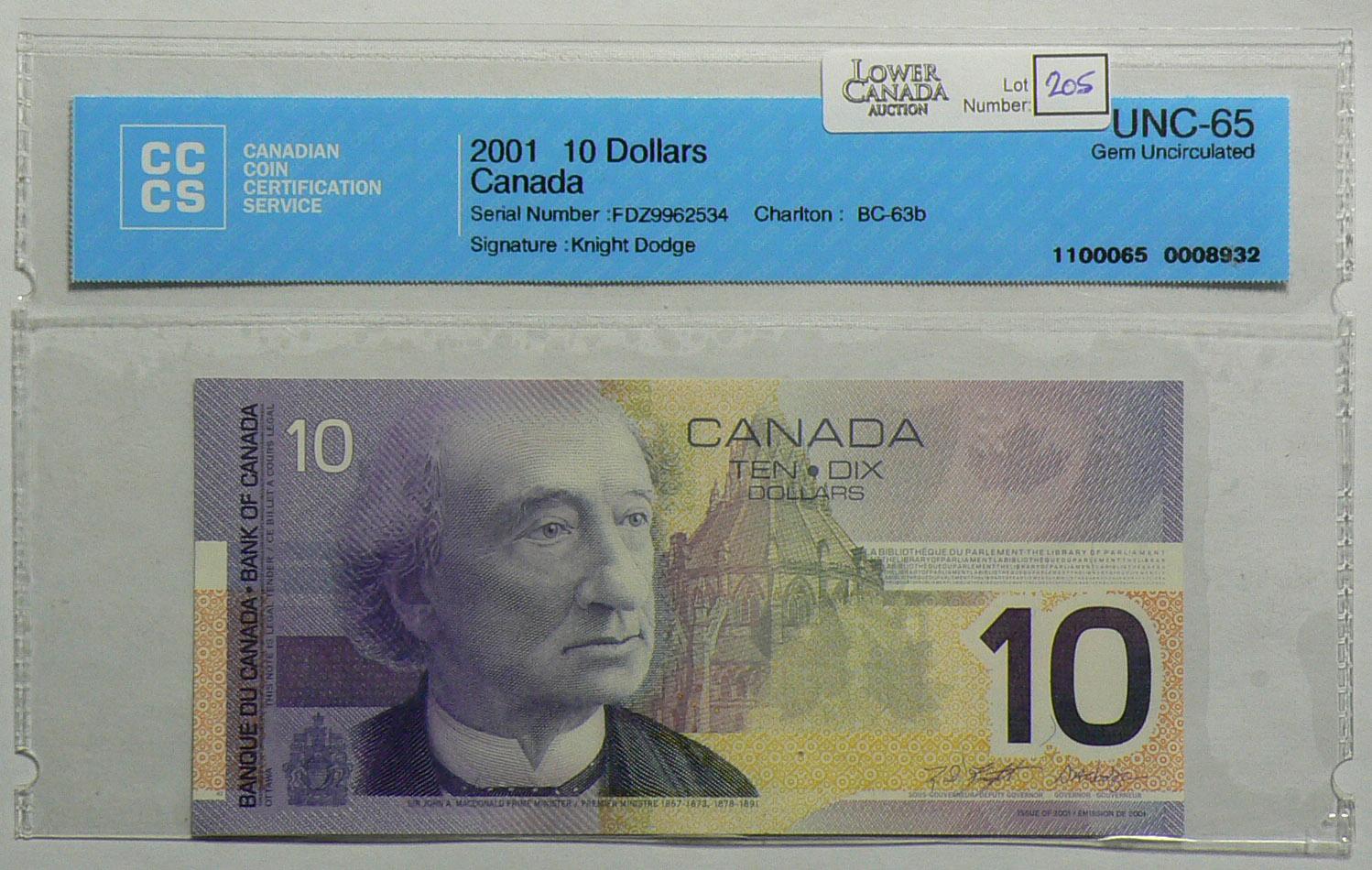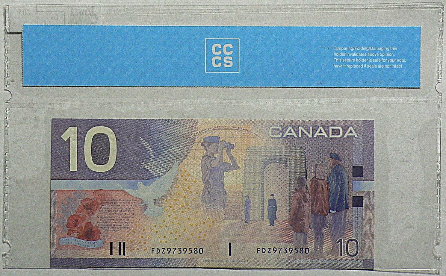 2003 Pair of Ten Dollars. BC-63b, CCCS UNC-63 & UNC-65, Knight Dodge, serial FDZ9739580 & FDZ9962534. Lot of 2 notes.