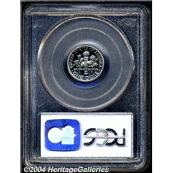 2003-S 10C Clad PR70 Deep Cameo PCGS. Monumentally impressed with a glittering, snow-white appearance and splendid contrast. The fields display fathomless depth and pristine surfaces, surrounding richly frosted devices. Certainly one of the finest known, and the first Proof 70 Deep Cameo to make a market appearance here at Heritage. Population: 23 in 70 (3/04). <BR><BR><B>Important notice:</B> Heritage usually auctions material at the rate of 200-250 lots per hour. On some occasions eBay Live bid software or the Internet may not be able to keep up with the pace of the auction. We recommend placing a realistic absentee bid now as insurance to avoid disappointment. Occasionally the auctioneer may eliminate or reject an eBay Live bid, and the auctioneer may also reopen a lot after the close of the eBay live bidding (usually because we missed an audience bid), and may reject your bid even if it shows you as the winning bidder. By bidding via eBay Live, you agree that Heritage may award the lot to another bidder at its sole discretion under the circumstances described above or any other reasonable circumstances. Since eBay bids are not shown to us until we open the lot on the floor, we treat those bids just like floor bids. In most cases the floor responds before the eBay bid is presented to us, due to Internet lag time, so for consistency we have made it a policy that floor bids are always considered first over tie eBay live bids. Also please note that all Heritage lots purchased through eBay Live carry a 20% Buyer's Premium. Please make sure you read the Terms and Conditions before you bid. <BR><BR><B>IMPORTANT ANNOUNCEMENT ABOUT RESERVES:</B> Heritage now divulges all reserves on its web site 7 days before every auction. If you want to know whether the reserve on this lot has been met, and if not, what the reserve amount is, please visit this lot page on the HeritageCoin.com web site, or email: bid@HeritageGalleries.com