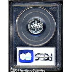 2003-S 10C Silver PR70 Deep Cameo PCGS. A stone-white specimen with razor-sharp definition and fully immaculate preservation. This superlative example is a feast for the eyes. While silver 2003-S Dimes in high grades are not rare, this lot provides an opportunity to obtain a Kreuter pedigree at an affordable cost. <BR><BR><B>Important notice:</B> Heritage usually auctions material at the rate of 200-250 lots per hour. On some occasions eBay Live bid software or the Internet may not be able to keep up with the pace of the auction. We recommend placing a realistic absentee bid now as insurance to avoid disappointment. Occasionally the auctioneer may eliminate or reject an eBay Live bid, and the auctioneer may also reopen a lot after the close of the eBay live bidding (usually because we missed an audience bid), and may reject your bid even if it shows you as the winning bidder. By bidding via eBay Live, you agree that Heritage may award the lot to another bidder at its sole discretion under the circumstances described above or any other reasonable circumstances. Since eBay bids are not shown to us until we open the lot on the floor, we treat those bids just like floor bids. In most cases the floor responds before the eBay bid is presented to us, due to Internet lag time, so for consistency we have made it a policy that floor bids are always considered first over tie eBay live bids. Also please note that all Heritage lots purchased through eBay Live carry a 20% Buyer's Premium. Please make sure you read the Terms and Conditions before you bid. <BR><BR><B>IMPORTANT ANNOUNCEMENT ABOUT RESERVES:</B> Heritage now divulges all reserves on its web site 7 days before every auction. If you want to know whether the reserve on this lot has been met, and if not, what the reserve amount is, please visit this lot page on the HeritageCoin.com web site, or email: bid@HeritageGalleries.com