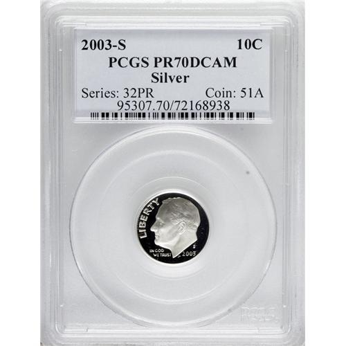 2003-S 10C Silver PR70 Deep Cameo PCGS. PCGS Popul