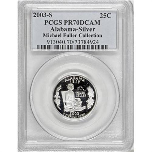 <B>2003-S 25C Alabama Silver PR70 Deep Cameo PCGS.</B></I> Michael Fuller Collection. PCGS Population (109/0). NGC Census: (0/0). Numismedia Wsl. Price for NGC/PCGS coin in PR70: $120. (#913040)<BR><BR><b>Shipping:</b> Coins & Currency (<a target="_blank" href="http://www.heritageauctions.com/common/shipping.php">view shipping information</a>)
