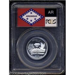 <table><tr><td><TABLE cellSpacing=0 cellPadding=0 width="100%" bgColor=#000000 border=0><TBODY> <TR><TD width="100%"><TABLE cellSpacing=1 cellPadding=3 width="100%" border=0><TBODY><TR><TD width="100%" bgColor=#79735c><FONT face=arial color=#ffffff size=3><B>Description</B> </FONT></TD></TR><TR><TD width="100%" bgColor=#ffffff><FONT face=arial size=2><B>2003-S 25C Arkansas Silver PR70 Deep Cameo PCGS.</B></I> Bright, silvery surfaces with strong field-to-devices contrast. Housed in a State Seal holder. </FONT></TD></TR></TBODY></TABLE></TD></TR></TBODY></TABLE><BR><A name=PricesRealized></A><TABLE cellSpacing=0 cellPadding=0 width="100%" bgColor=#000000 border=0><TBODY><TR><TD width="100%"><TABLE cellSpacing=1 cellPadding=3 width="100%" border=0><TBODY><TR><TD width="100%" bgColor=#79735c><A name=PR><FONT face=arial color=#ffffff size=3><B>Previous Prices from Heritage Auctions</B> </FONT></A></TD></TR><TR><TD bgColor=#f6f6ed>No Prior Data Recorded </TD></TR><TR><TD bgColor=#ffffff><FONT face=arial size=1 ?>PLEASE NOTE: All prices realized reflect the final hammer price PLUS the buyer's premium in auctions that charge a buyer's premium. Each item has a notation at the top of the listing indicating whether that lot included a buyer's premium. Example: A item that sells with a final hammer price of $100 and a 20% buyer's premium will display with a price realized of $120. All information listed is intended to be as accurate as possible, but errors are possible. Please use this guide carefully and inform us of any inaccuracies. </FONT></TD></TR></TBODY></TABLE></TD></TR></TBODY></TABLE><BR><TABLE cellSpacing=0 cellPadding=0 width="100%" bgColor=#000000 border=0><TBODY><TR><TD width="100%"><TABLE cellSpacing=1 cellPadding=3 width="100%" border=0><TBODY><TR><TD width="100%" bgColor=#79735c colSpan=6><FONT face=arial color=#ffffff size=3><B>Price Guide*</B> </FONT></TD></TR><TR bgColor=#f6f6ed><TD align=middle><B>Grade</B> </TD><TD align=middle><B>Coin World<BR>(Trends)</B> </TD><TD align=middle><B>Numismedia<BR>Retail</B> </TD><TD align=middle><B>Numismedia<BR>Wholesale</B> </TD><TD align=middle><B>Coin<BR>Universe</B> </TD><TD align=middle><B>Heritage<BR>Value Index</B> </TD></TR><TR bgColor=#ffffff><TD align=middle>69</TD><TD align=right>---</TD><TD align=right>---</TD><TD align=right>---</TD><TD align=right>---</TD><TD align=right>($1.00)</TD></TR><TR style="FONT-WEIGHT: bold" bgColor=#cccfdd><TD align=middle>70</TD><TD align=right>---</TD><TD align=right>---</TD><TD align=right>---</TD><TD align=right>---</TD><TD align=right>($1.00)</TD></TR><TR bgColor=#ffffff><TD colSpan=6><FONT size=1>*All information listed is intended to be as accurate as possible, but errors are possible. No item may be returned or refused based on this information which is provided as a service to our customers. You should contact each pricing source directly to determine the accuracy of this information. </FONT></TD></TR></TBODY></TABLE></TD></TR></TBODY></TABLE><BR><TABLE cellSpacing=0 cellPadding=0 width="100%" bgColor=#000000 border=0><TBODY><TR><TD width="100%"><TABLE cellSpacing=1 cellPadding=3 width="100%" border=0><TBODY><TR><TD width="100%" bgColor=#79735c><FONT face=arial color=#ffffff size=3><B>Population Guide</B> </FONT></TD></TR><TR bgColor=#ffffff><TD align=middle></TD></TR></TBODY></TABLE></TD></TR></TBODY></TABLE><BR><TABLE cellSpacing=0 cellPadding=0 width="100%" bgColor=#000000 border=0><TBODY><TR> Important notice: Heritage usually auctions material at the rate of 200-250 lots per hour. On some occasions eBay Live bid software or the Internet may not be able to keep up with the pace of the auction. We recommend placing a realistic absentee bid now as insurance to avoid disappointment. Occasionally the auctioneer may eliminate or reject an eBay Live bid, and the auctioneer may also reopen a lot after the close of the eBay live bidding (usually because we missed an audience bid), and may reject your bid even if it shows you as the winning bidder. By bidding via eBay Live, you agree that Heritage may award the lot to another bidder at its sole discretion under the circumstances described above or any other reasonable circumstances. Also please note that all Heritage lots purchased through eBay Live carry a 20% Buyer's Premium. Please make sure you read the Terms and Conditions before you bid.</TD></TR></TBODY></TABLE></TD></TR></TBODY></TABLE>