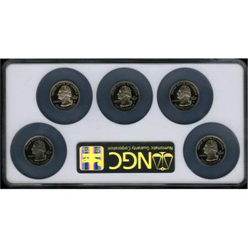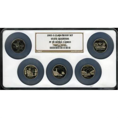 <B>2003-S 25C Clad Proof Set State Quarters PR70 Deep Cameo NGC.</B></I> The set includes Illinois, Alabama, Maine, Missouri and Arkansas. <BR><BR><b>Shipping:</b> Coins & Currency (<a target="_blank" href="http://www.heritageauctions.com/common/shipping.php">view shipping information</a>)
