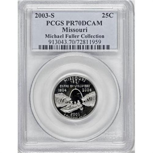 <B>2003-S 25C Missouri Clad PR70 Deep Cameo PCGS.</B></I> Michael Fuller Collection. PCGS Population (86/0). NGC Census: (0/0). Numismedia Wsl. Price for NGC/PCGS coin in PR70: $120. (#913043)<BR><BR><b>Shipping:</b> Coins & Currency (<a target="_blank" href="http://www.heritageauctions.com/common/shipping.php">view shipping information</a>)