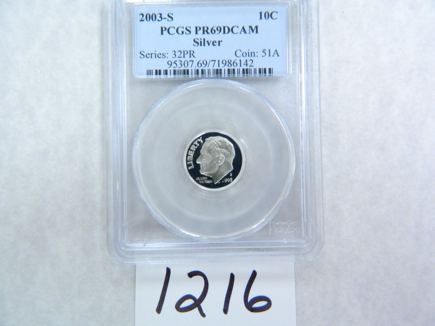 2003-S SILVER Roosevelt Dime PCGS Graded PR69 DC 90% Silver