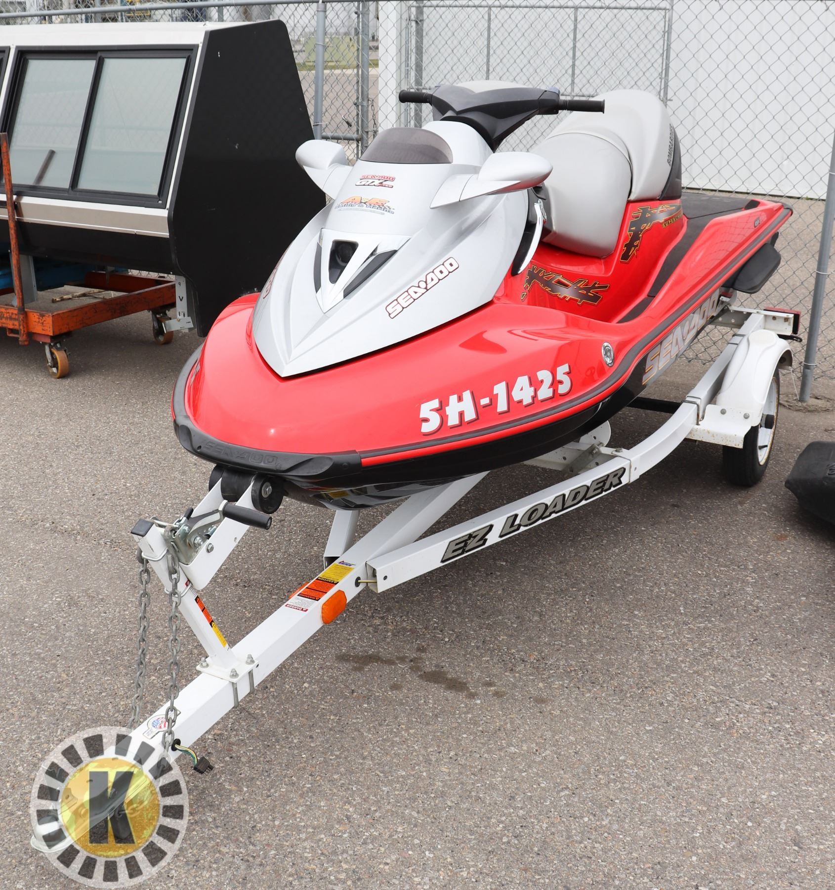 COMES WITH EZ LOADER TRAILER. 107 HOURS USE. INDOOR STORAGE WHEN NOT IN USE. BATTERY NEEDS REPLACING. RECENTLY REPLACED PROPELLER AND WEAR RING. COMES WITH EMERGENCY KIT, TOW ROP, ANCHOR. ***ITEM IS LOCATED IN LETHBRIDGE ALBERTA, WINNING BIDDER MUST ARRANGE PICKUP