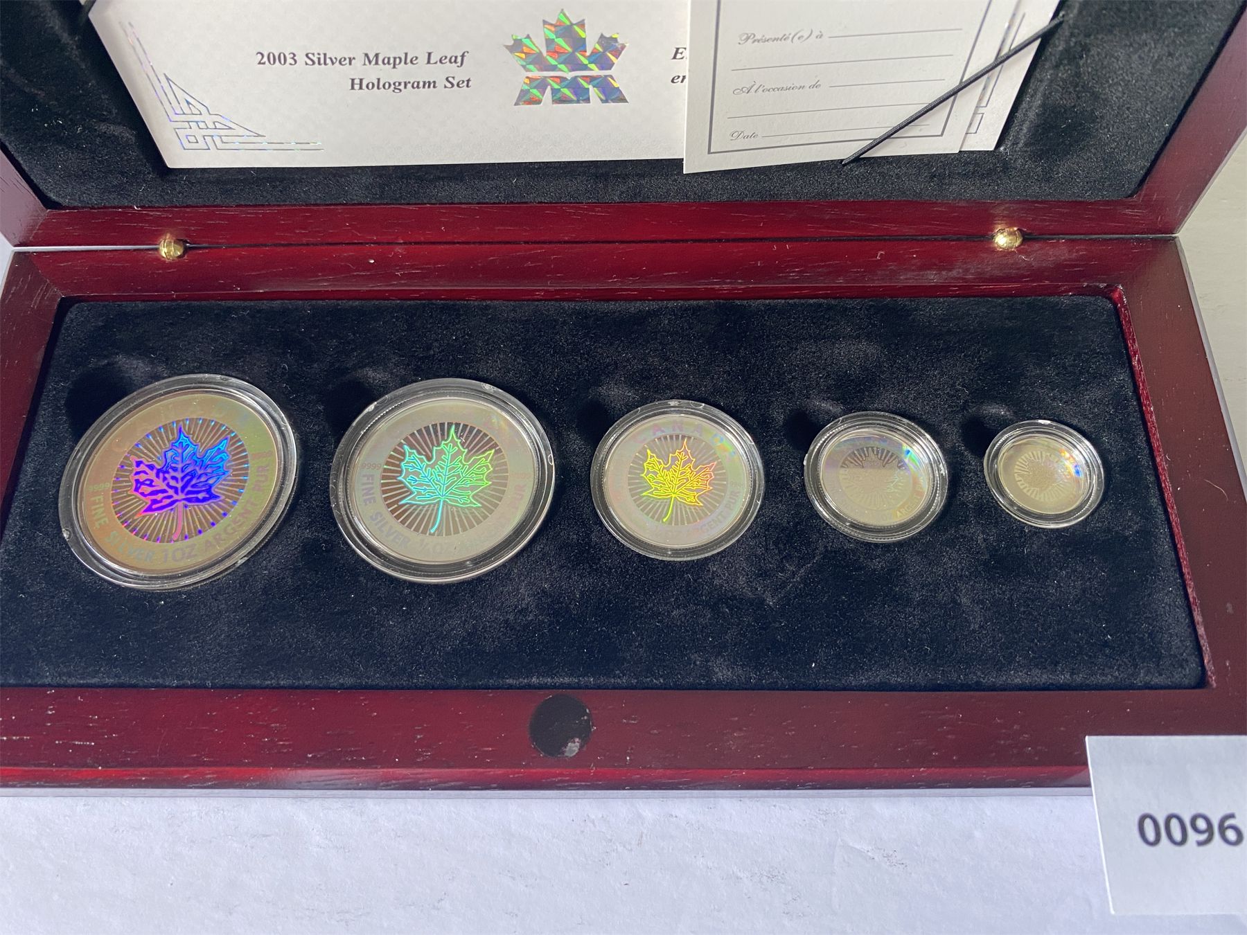2003 SILVER MAPLE HOLOGRAM SET - $5, 4, 3, 2, 1 IN WOOD PRESENTATION CASE