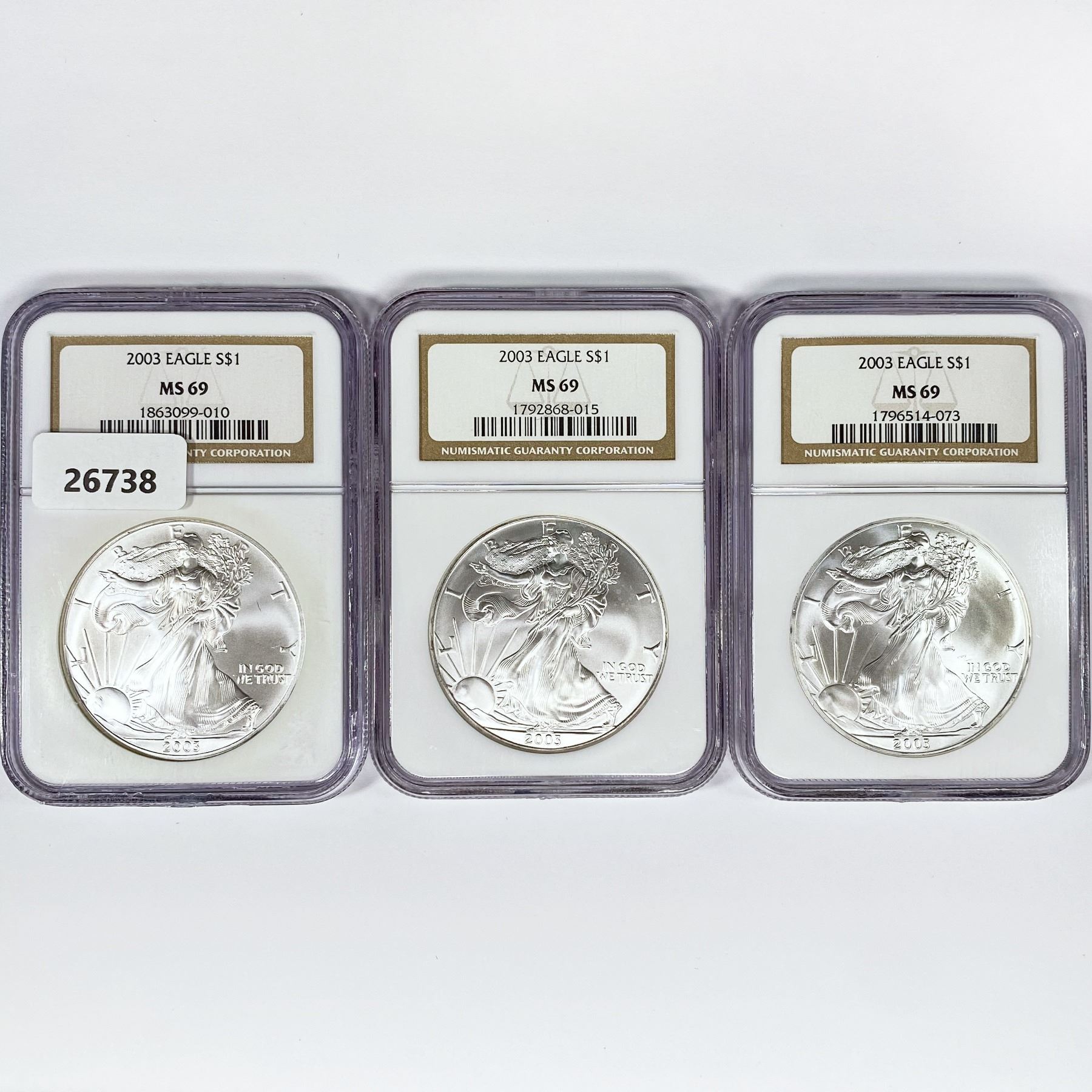 2003 Set (3) American Silver Eagles NGC MS69