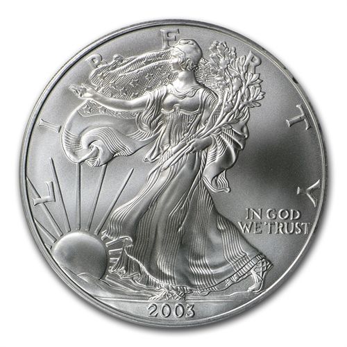 2003 Silver American Eagle - MS-70 PCGS - First Strike **|**|** Year: 2003 ; Mint Mark: MS-70 ; Denomination: $1 ; MSRP: $1400