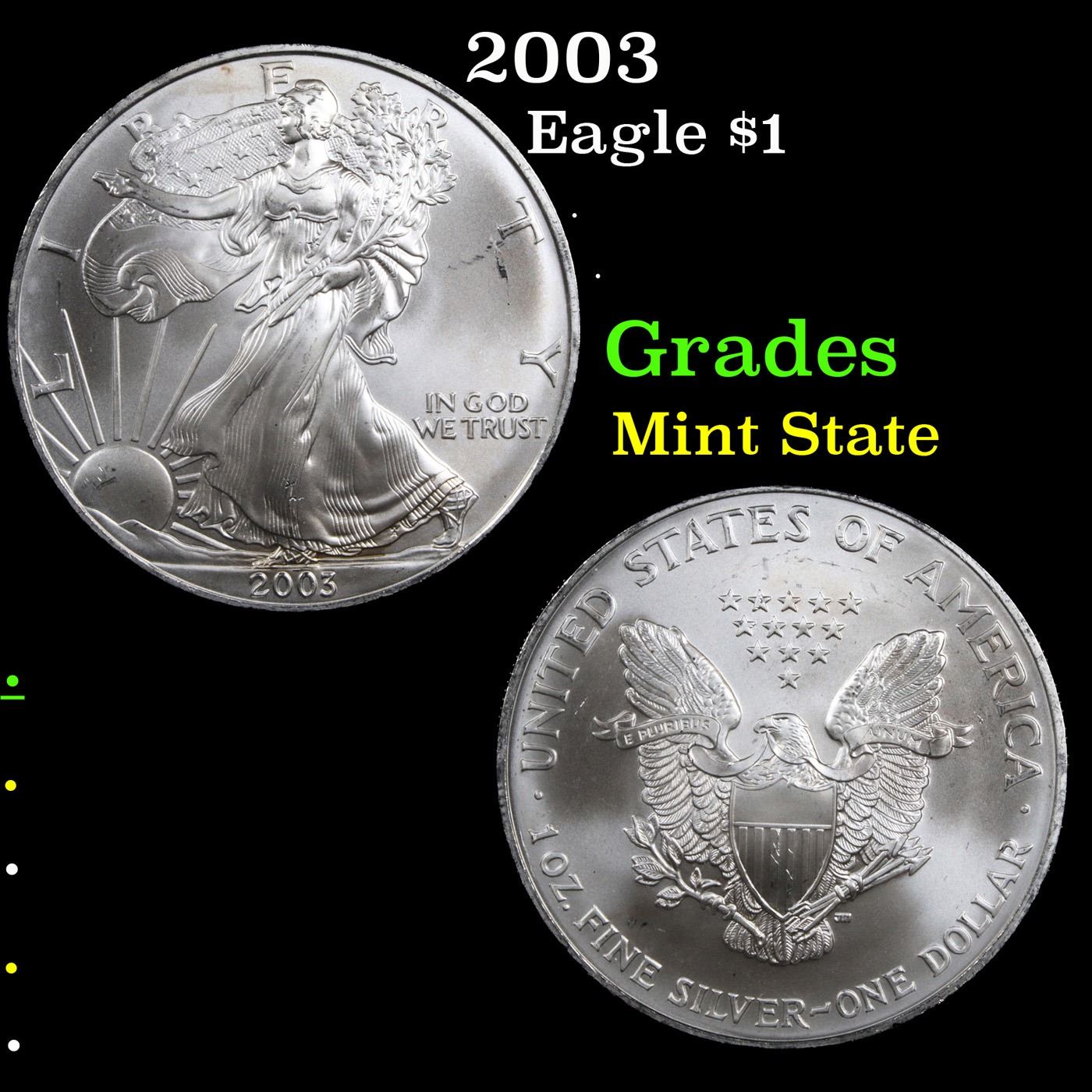 2003 Silver Eagle Dollar $1 Grades Mint State.