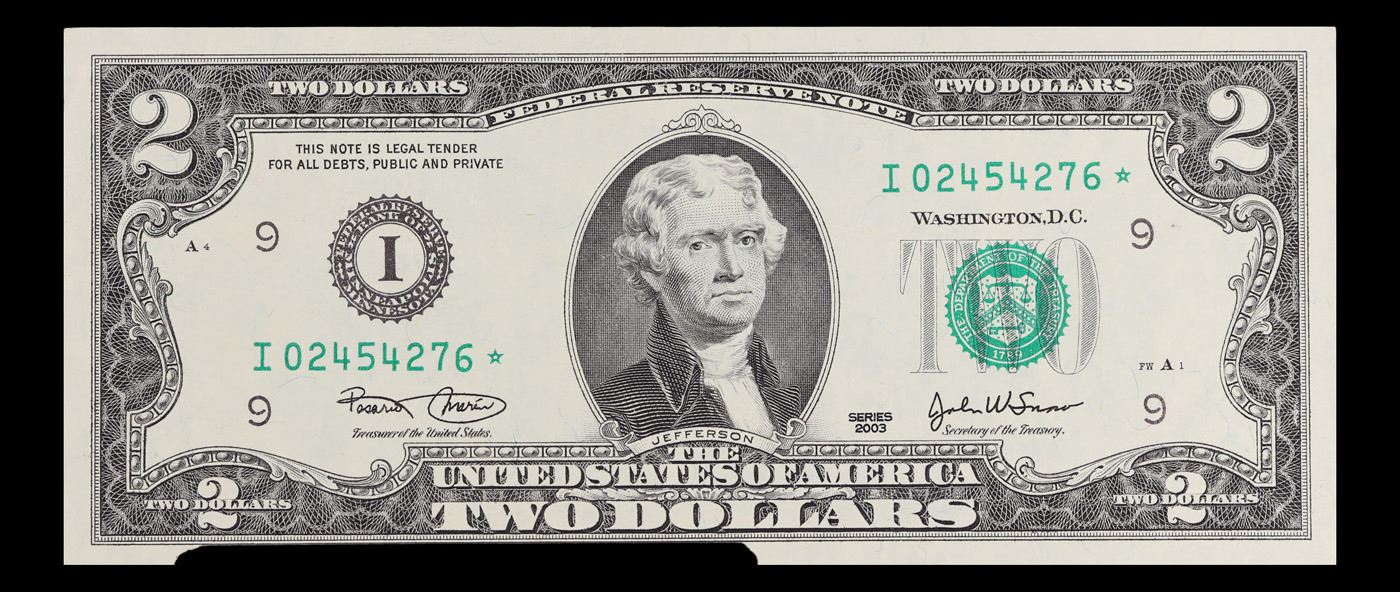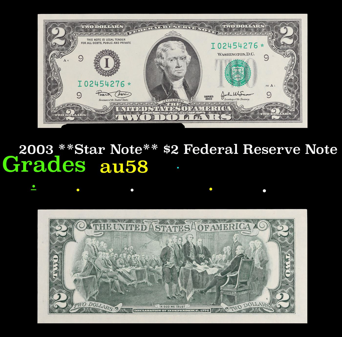 2003 **Star Note** $2 Federal Reserve Note Grades Choice AU/BU Slider.