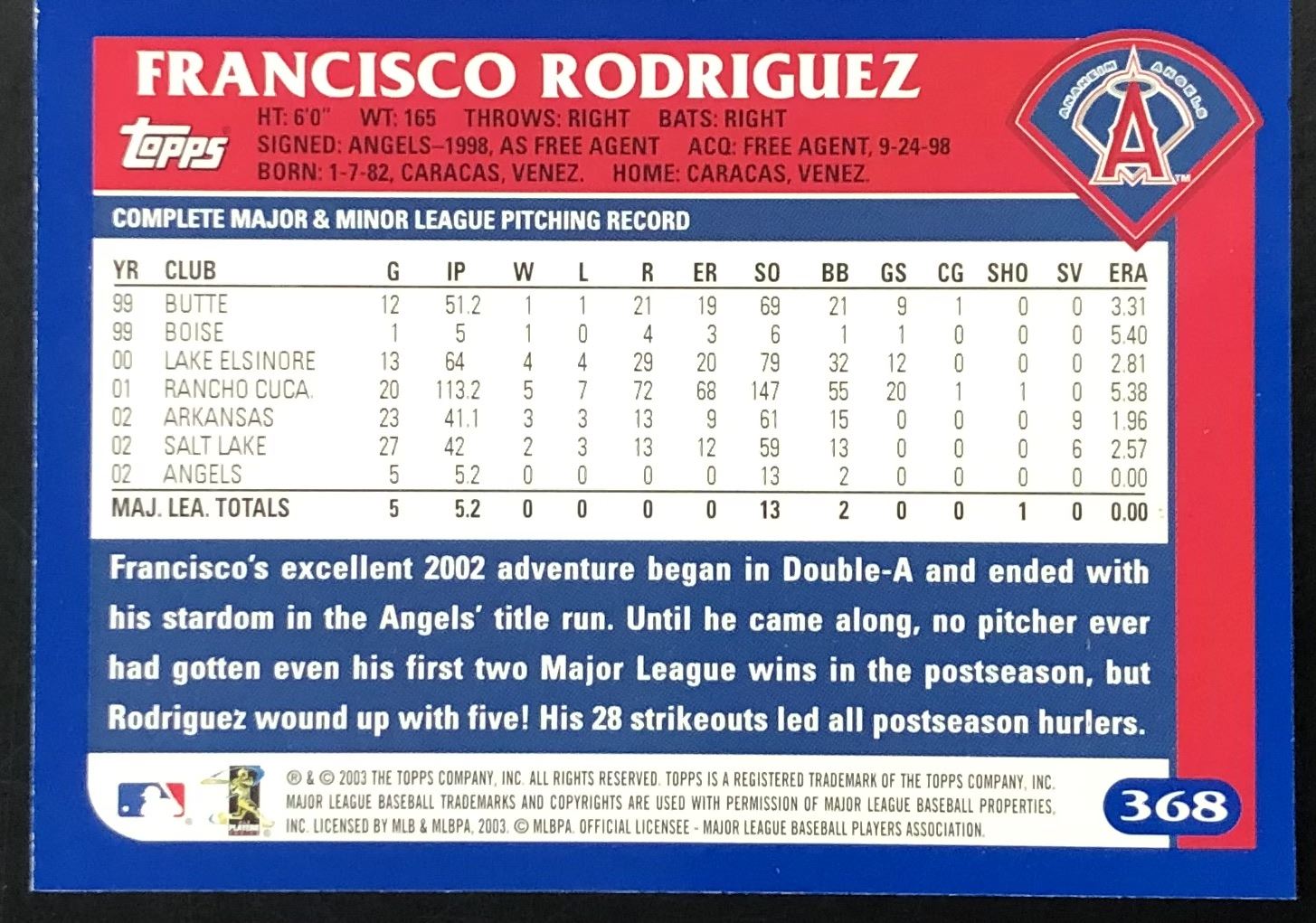 Card #368 MLB, baseball, rookie