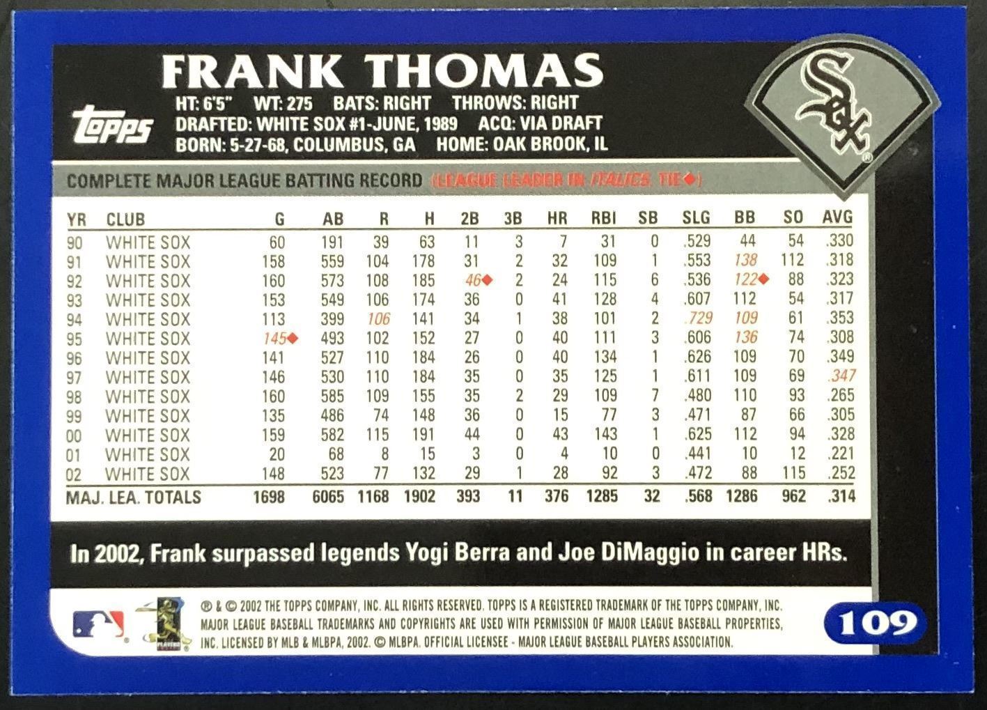 Card #109 MLB, baseball, hall of fame