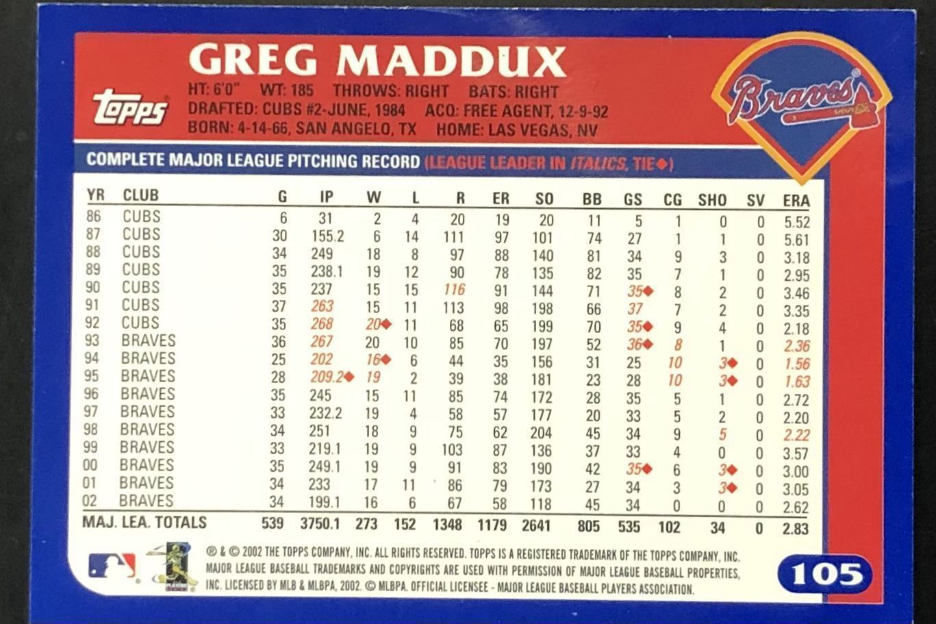 Card #105 MLB, baseball, hall of fame