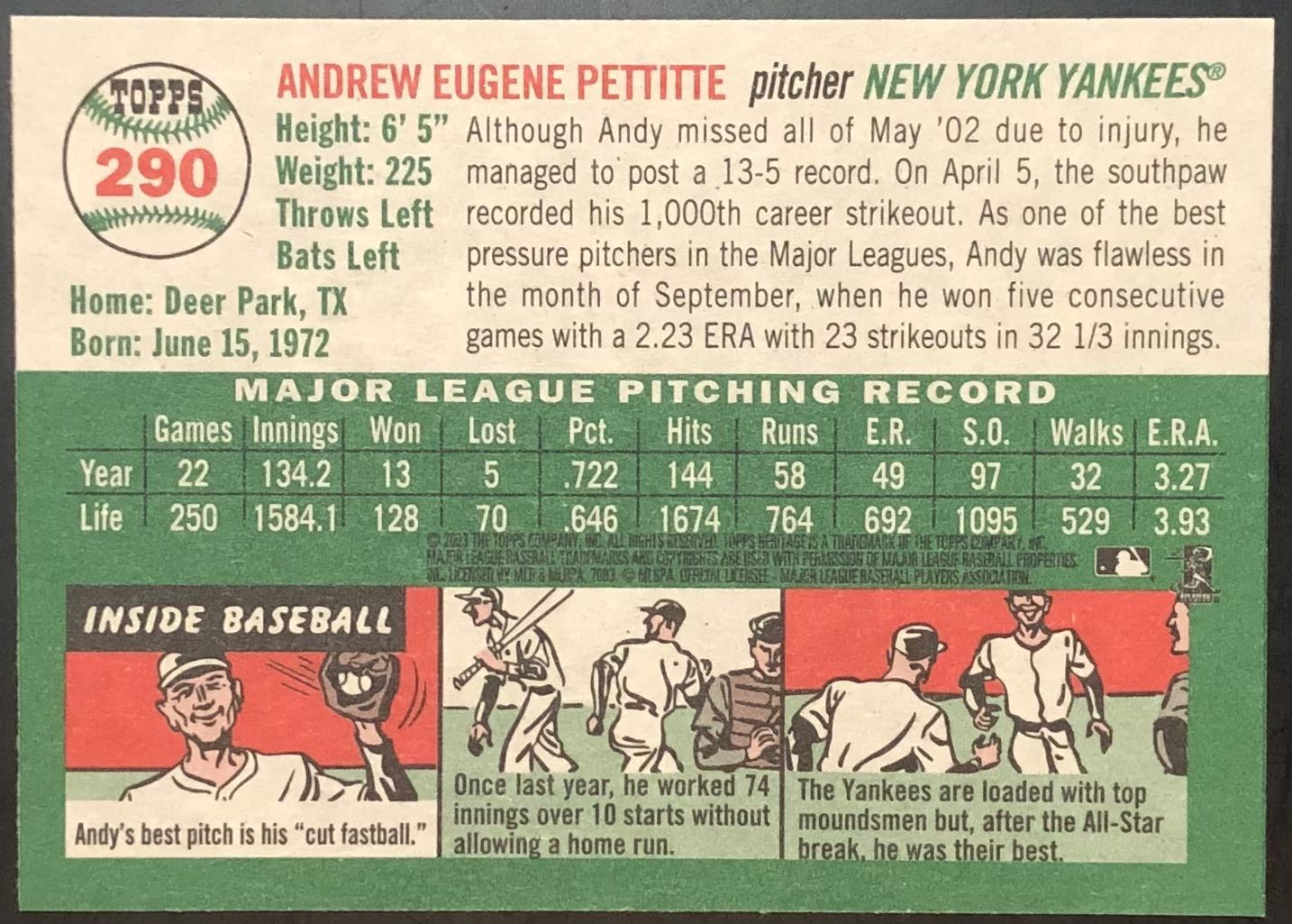Card #290 MLB, baseball, hall of fame
