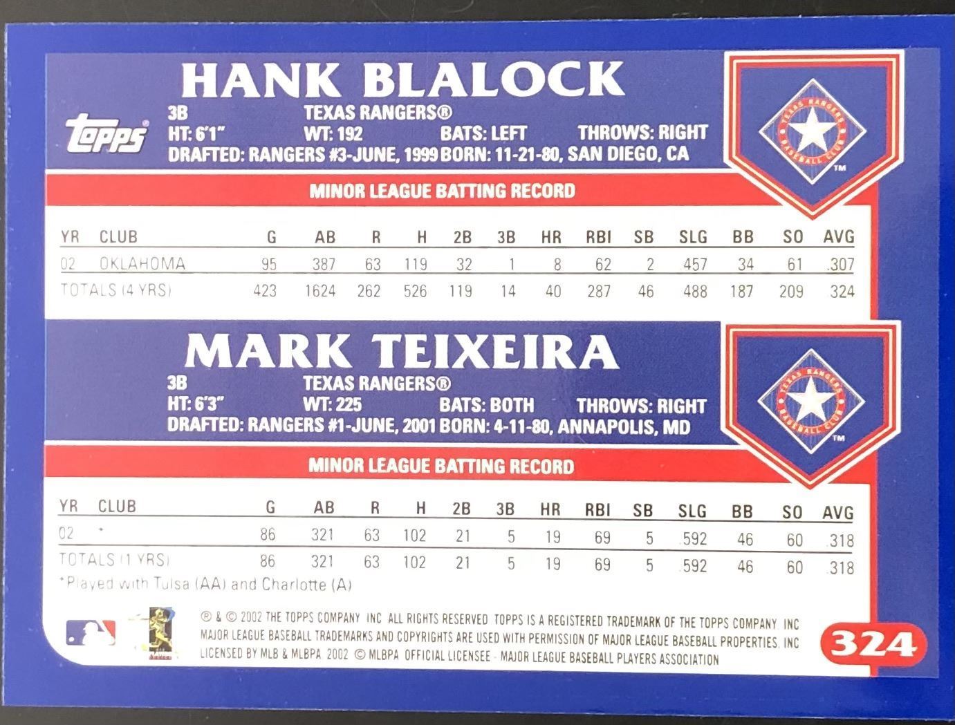 Card #324 MLB, baseball, rookie