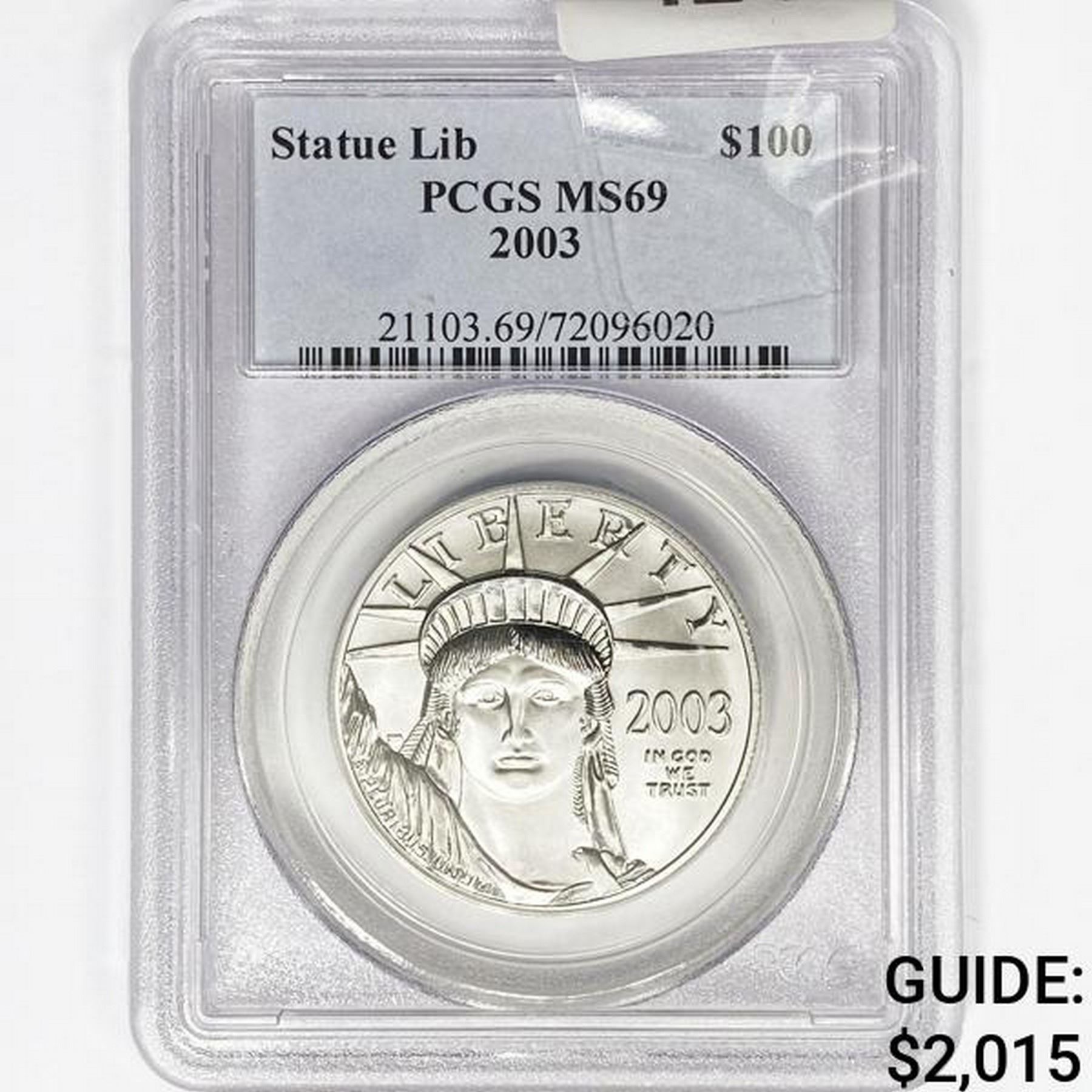 2003 US 1oz. Platinum $100 Statue Lib PCGS MS69