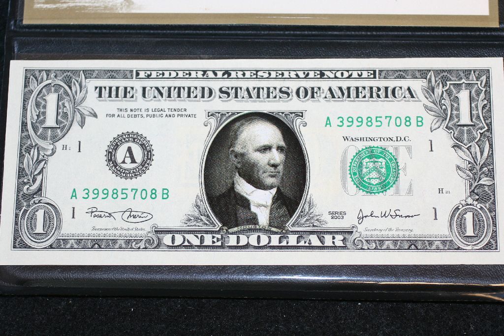 2003 US Federal Reserve Note $1; Boston MA Reserve; Lone Star State Bill; UNC