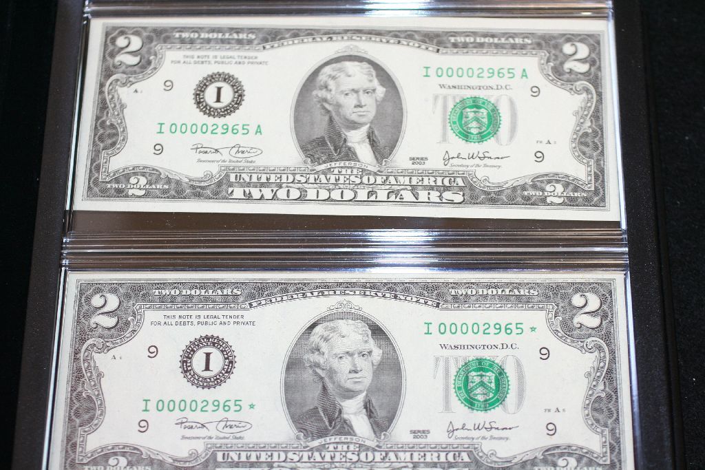 2003 US Federal Reserve Note $2; Minneapolis MN Reserve & 2003 US Federal Reserve Note $2; Minneapolis MN Reserve; Star Note In Bureau of Engraving and Printing Book