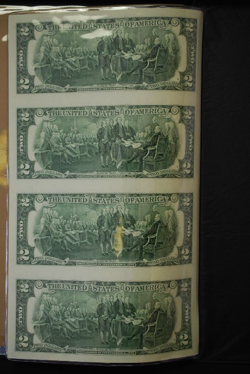 2003 US Federal Reserve Note $2; New York NY Reserve; Lot of 4; Uncut Bills; EST. $20-30