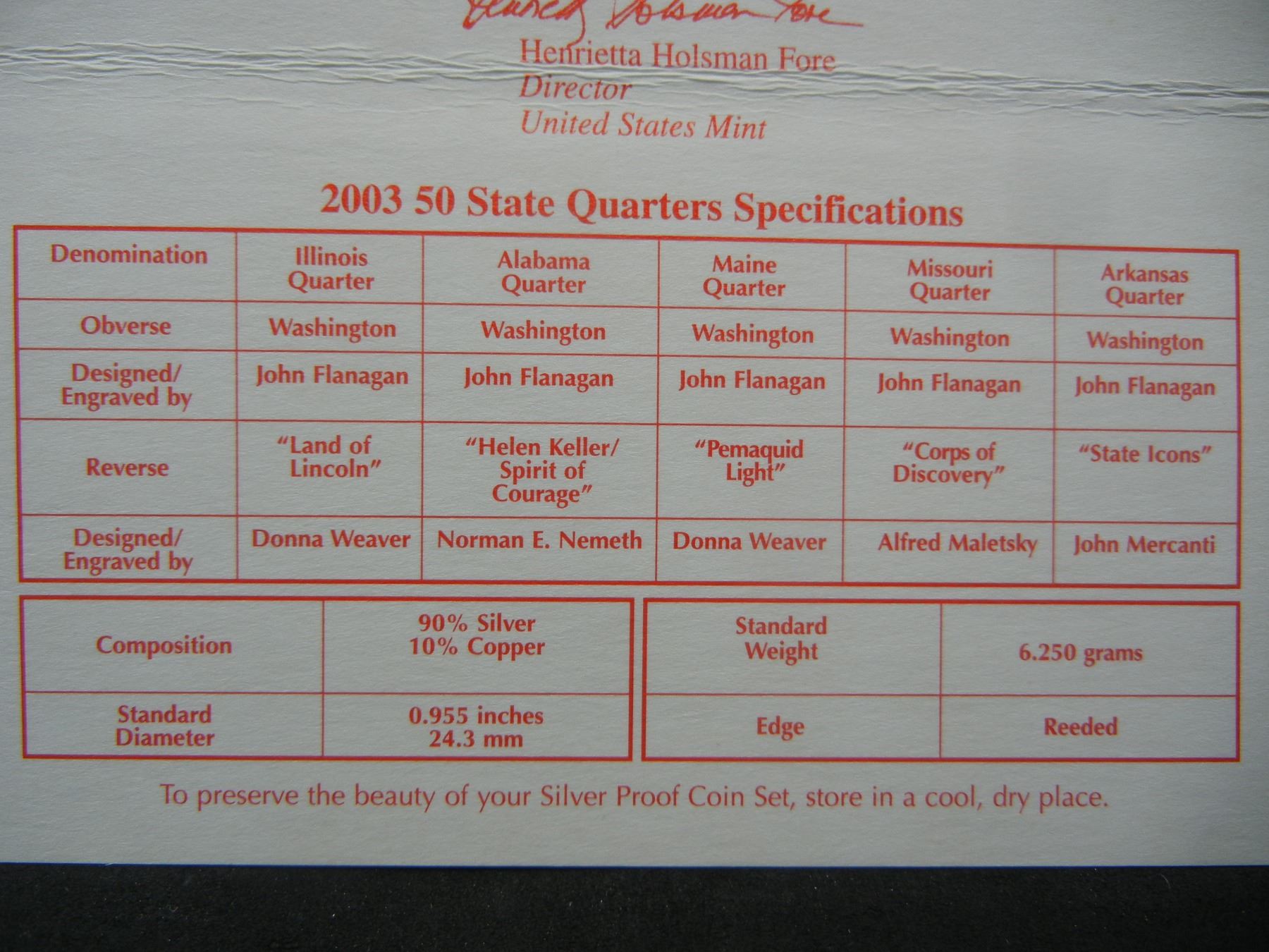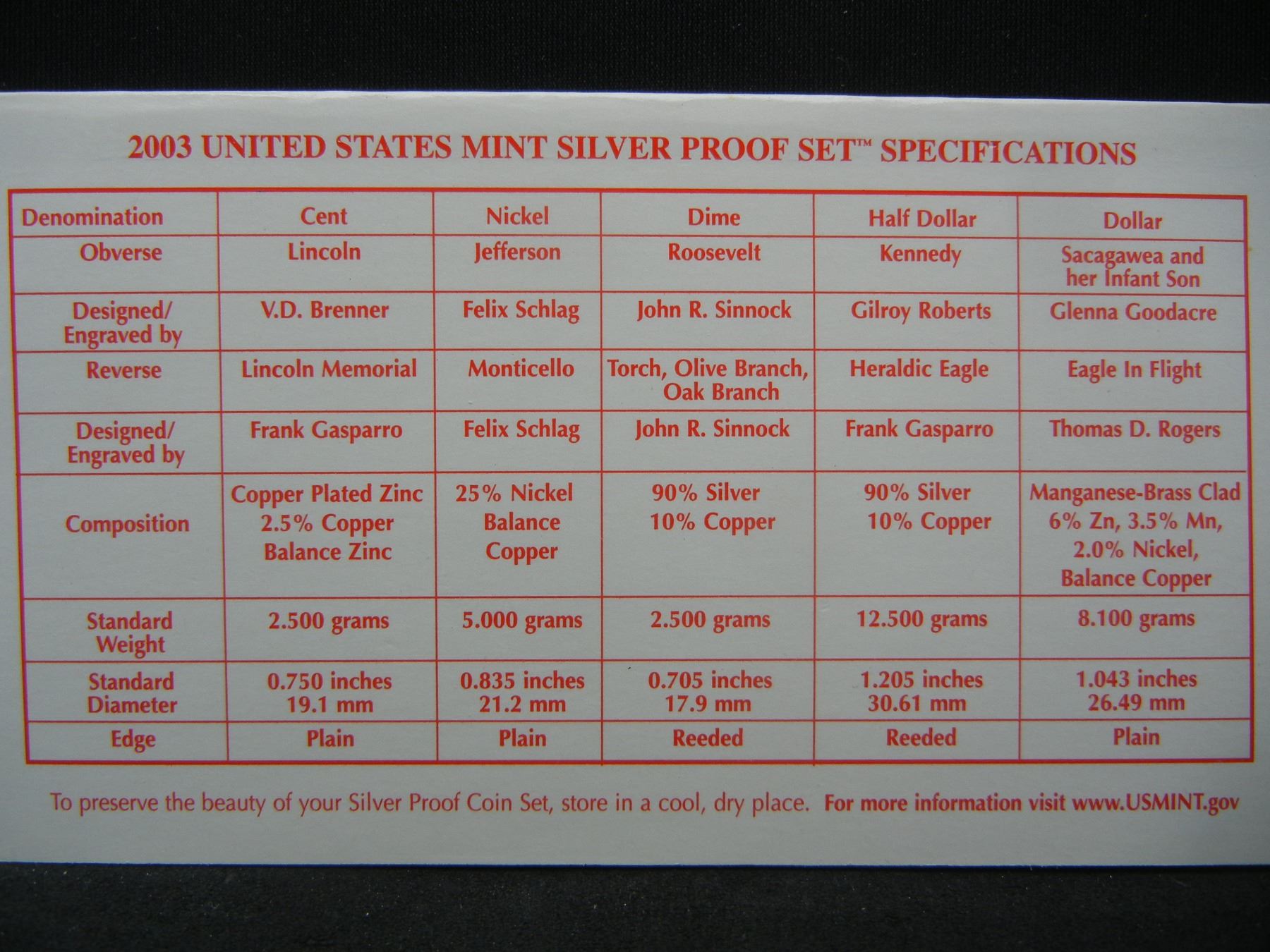 2003 US Mint Silver Proof Set With Quarters