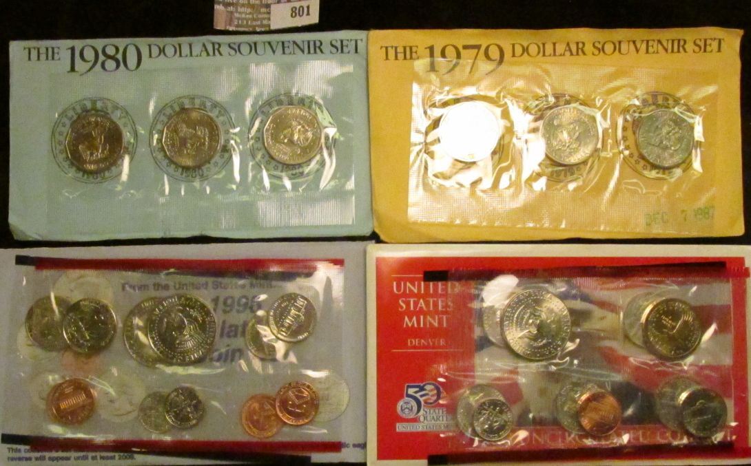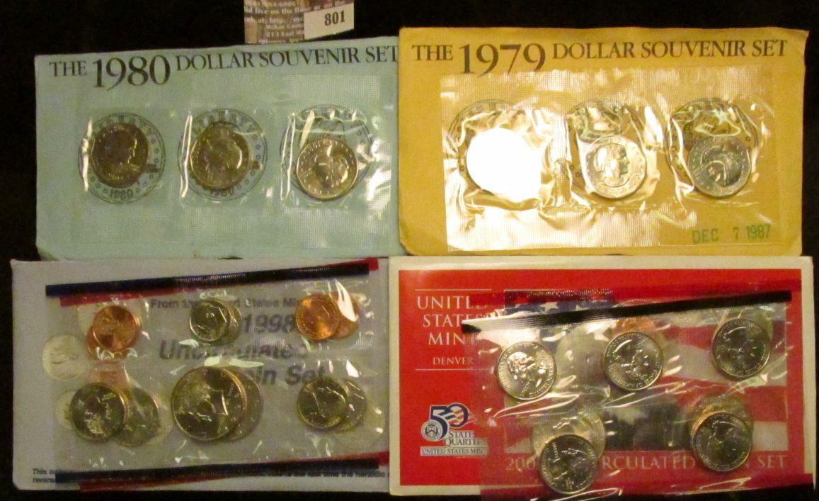 2003 Uncirculated Denver U.S. Mint Set in original holder; 1998 P & D U.S. Mint Set in original holder; 1979 & 80 P, D, & S Dollar Souvenir Sets.