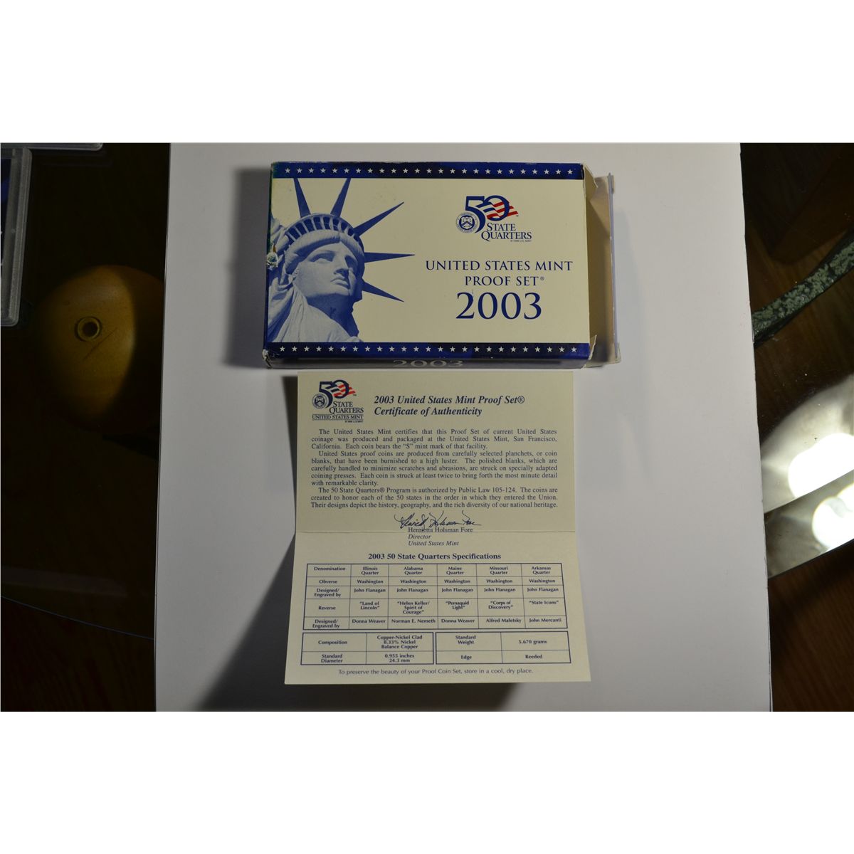 *2003 United States Mint Proof Set with Certificate of Authenticity Excellent Condition Includes All 2003 State Quarters* ***Coin, Currency & All Items Listed in this auction - Grades, Conditions and Values are not Safe Deposit Coins LLC Responsibilty. Grades, Condition and Values are determined by Consigner(s) & Buyers ONLY***