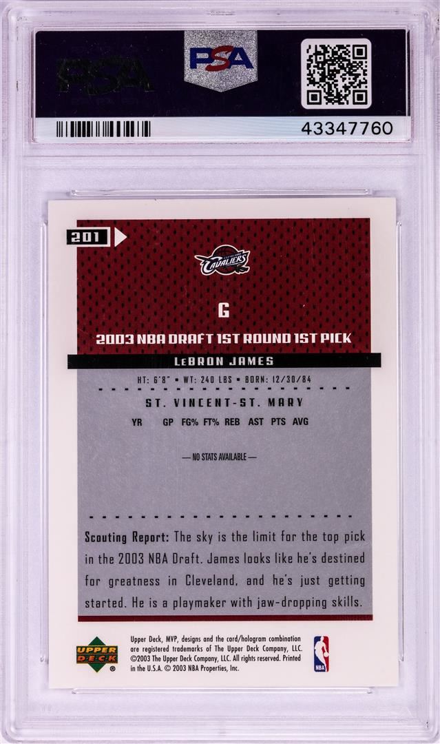 2003 Upper Deck MVP LeBron James Rookie NBA Card #201 PSA Mint 9