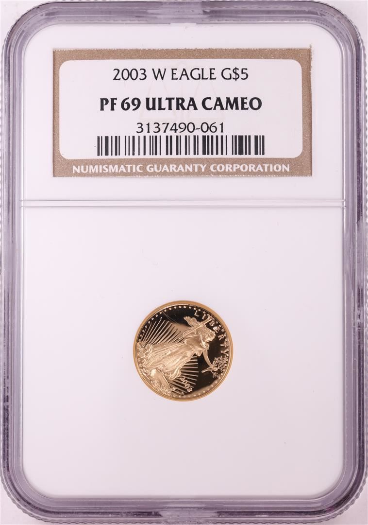 One 2003-W $5 Proof American Gold Eagle Coin NGC PF69 Ultra Cameo. NGC Certified.