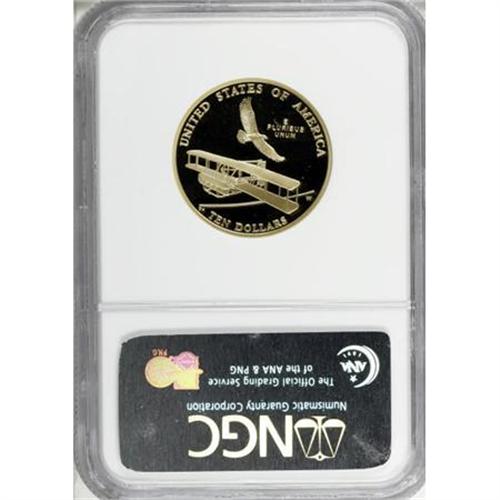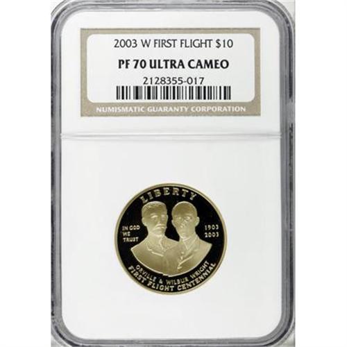 <B>2003-W G$10 First Flight Gold Eagle PR70 Deep Cameo NGC.</B></I> NGC Census: (0/0). PCGS Population (23/0). Numismedia Wsl. Price for NGC/PCGS coin in PR70: $720. (#921003)<BR><BR><b>Shipping:</b> Coins & Currency (<a target="_blank" href="http://www.heritageauctions.com/common/shipping.php">view shipping information</a>)