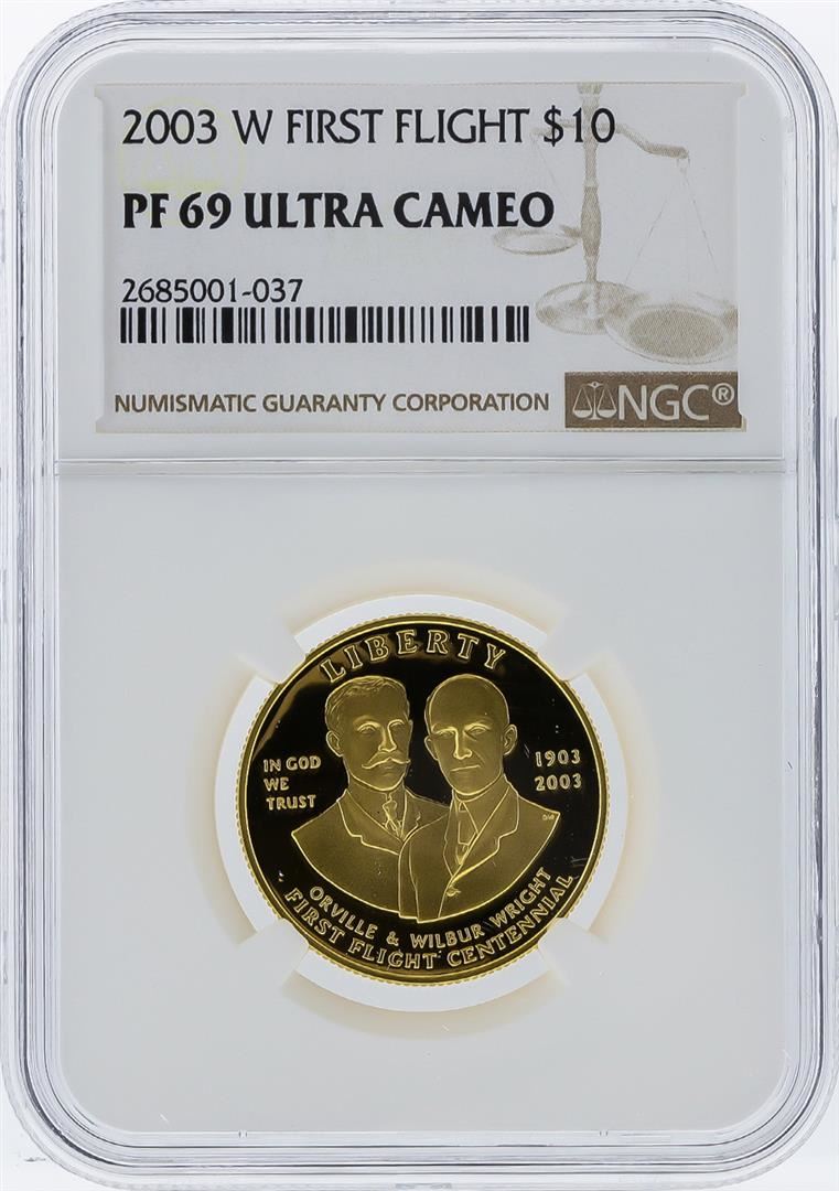 One 2003-W NGC PF69 Ultra Cameo $10 First Flight Gold Coin. NGC Certified.