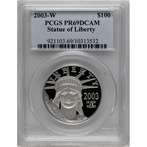 <B>2003-W P$100 One-Ounce Platinum Eagle PR69 Deep Cameo PCGS.</B></I> PCGS Population (441/20). NGC Census: (0/0). Numismedia Wsl. Price: $1,375. (#921103)<BR><BR><b>Shipping:</b> Coins & Currency (<a target="_blank" href="http://www.heritageauctions.com/common/shipping.php">view shipping information</a>)
