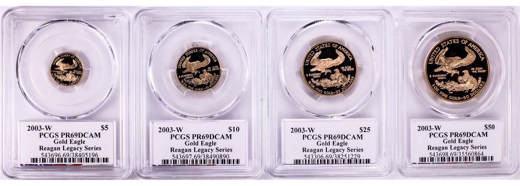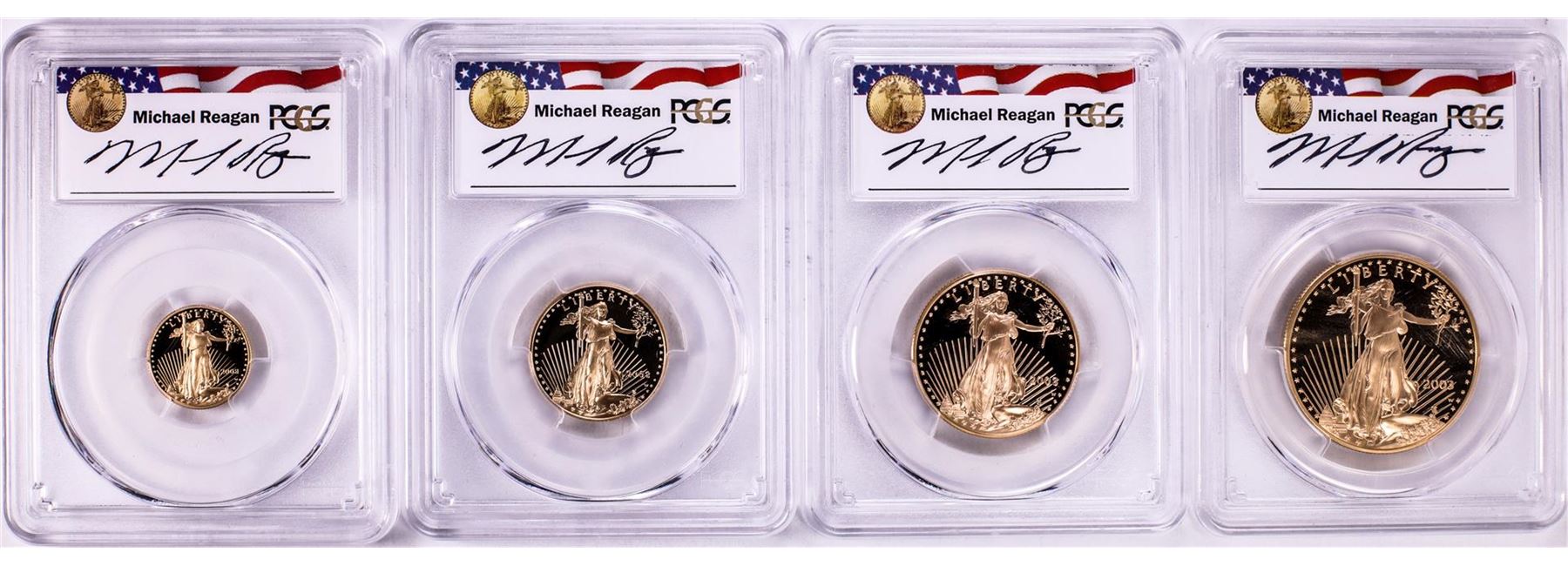 One 2003-W Proof American Gold Eagle (4) Coin Set PCGS PR69DCAM Michael Reagan Signature. PCGS Graded.