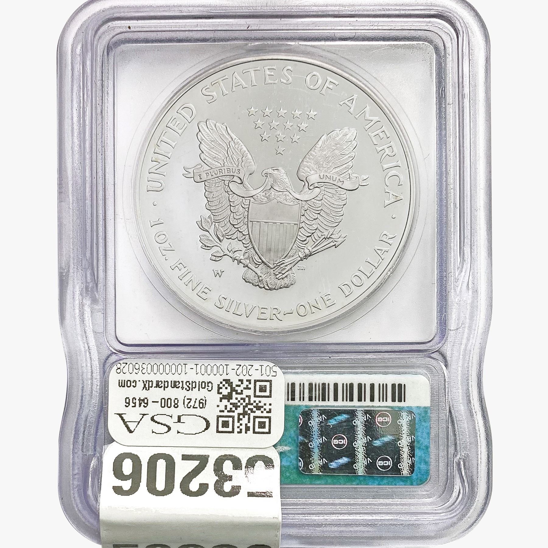 e. Coins sold referencing a third-party grading service are sold “AS IS” without any express or implied warranty, except for a guarantee by GSA that they are genuine. Removal or alteration of the holder, voids all of Bidder’s claims concerning that Product. Certain warranties may be available from the grading services and Bidders are referred to them for further details: Numismatic Guaranty Corporation (NGC), PO Box 4776, Sarasota, FL 34230, www.ngccoin.com/services/writtenguarantee.asp; Professional Coin Grading Services (PCGS), PO Box 9458, Newport Beach, CA 92658, www.pcgs.com/guarantee.html; ANACS, 6555 S. Kenton St., Ste. 303, Englewood, CO 80111; and Independent Coin Grading Co. (ICG), 7901 East Bellview, Ave., Suite 50, Englewood, CO 80111.