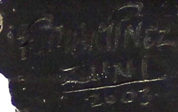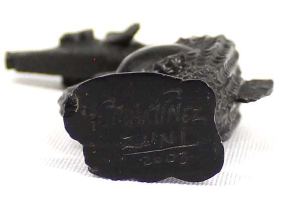 2003 Native American Zuni Carved Jet Seahorse by Florentino Martinez, measures 2'' x 2.5'' and is signed on the bottom, turquoise eyes, impeccable detail, FYI: ''Florentino Martinez ''Tino'', a man of about 50 years, has been carving ever since the early 1980s. He has always loved delicate fetishes with superb detail and for Tino, detail is paramount.''
