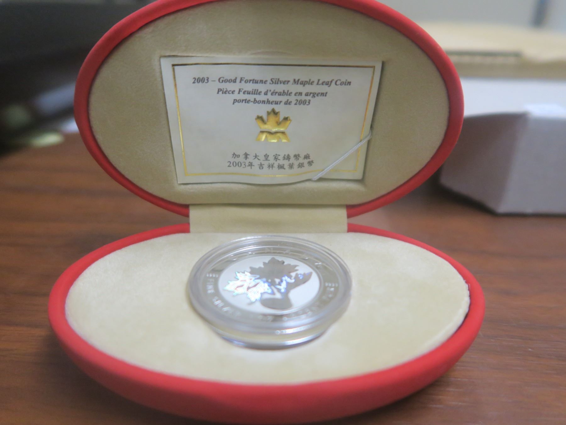 2003- good fortune silver maple leaf coin