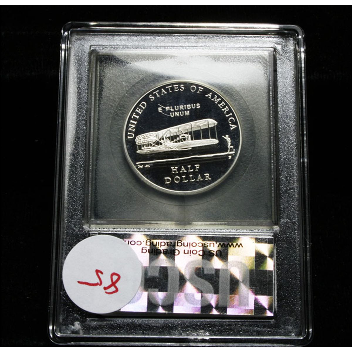 Proof Commemorative Half Dollar Graded PR70 Deep Cameo by USCG. Beautiful Silver Commemorative celebrating the centennial of the first flight by the Wright Brothers. PCGS lists PR70 at $800, harder in 70 than most. Estimated Value $250.