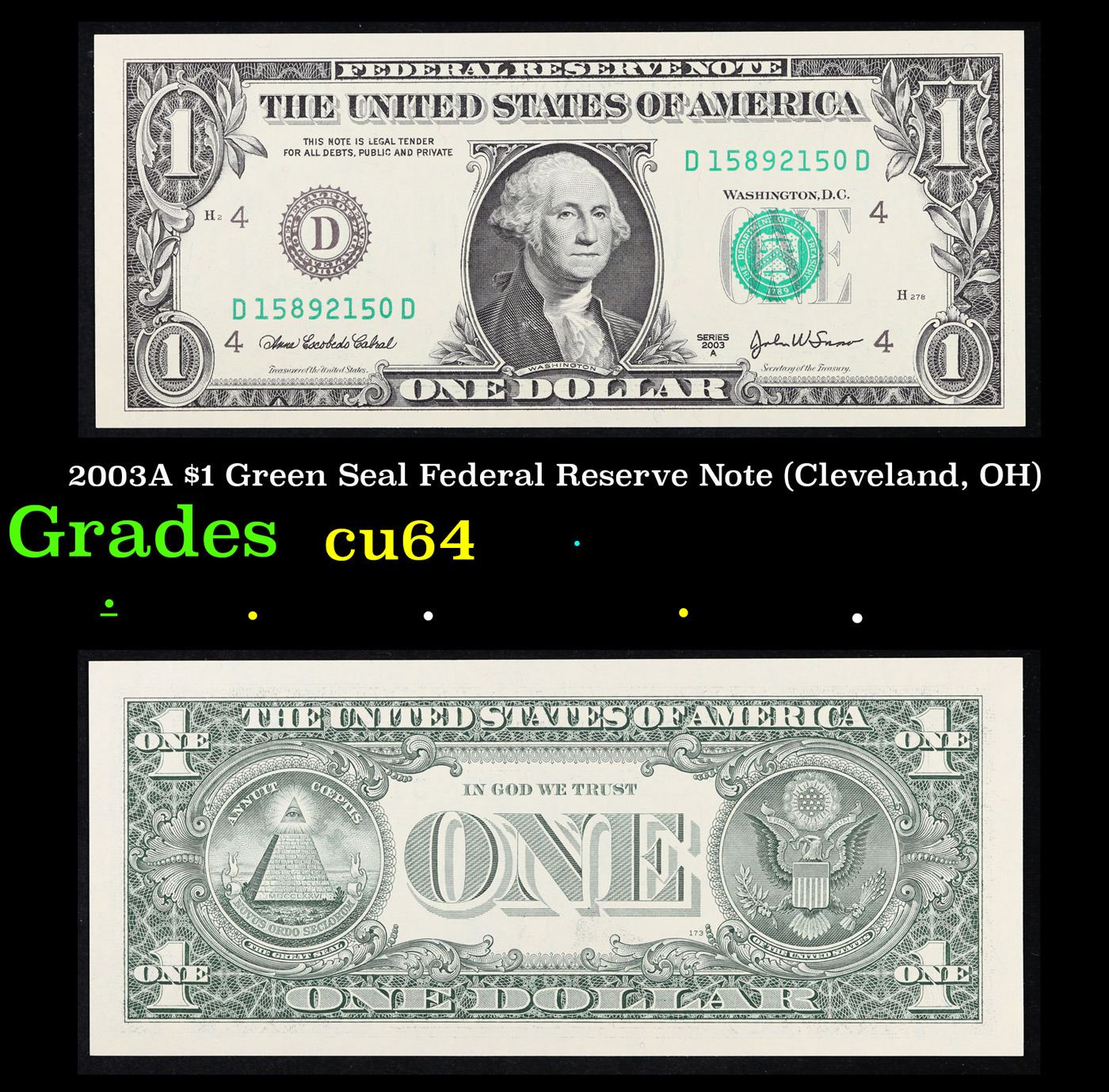 2003A $1 Green Seal Federal Reserve Note (Cleveland, OH) Grades Choice CU.