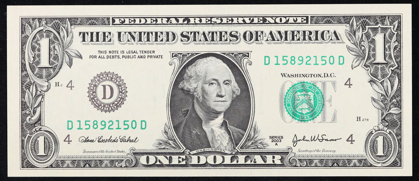 2003A $1 Green Seal Federal Reserve Note (Cleveland, OH) Grades Choice CU