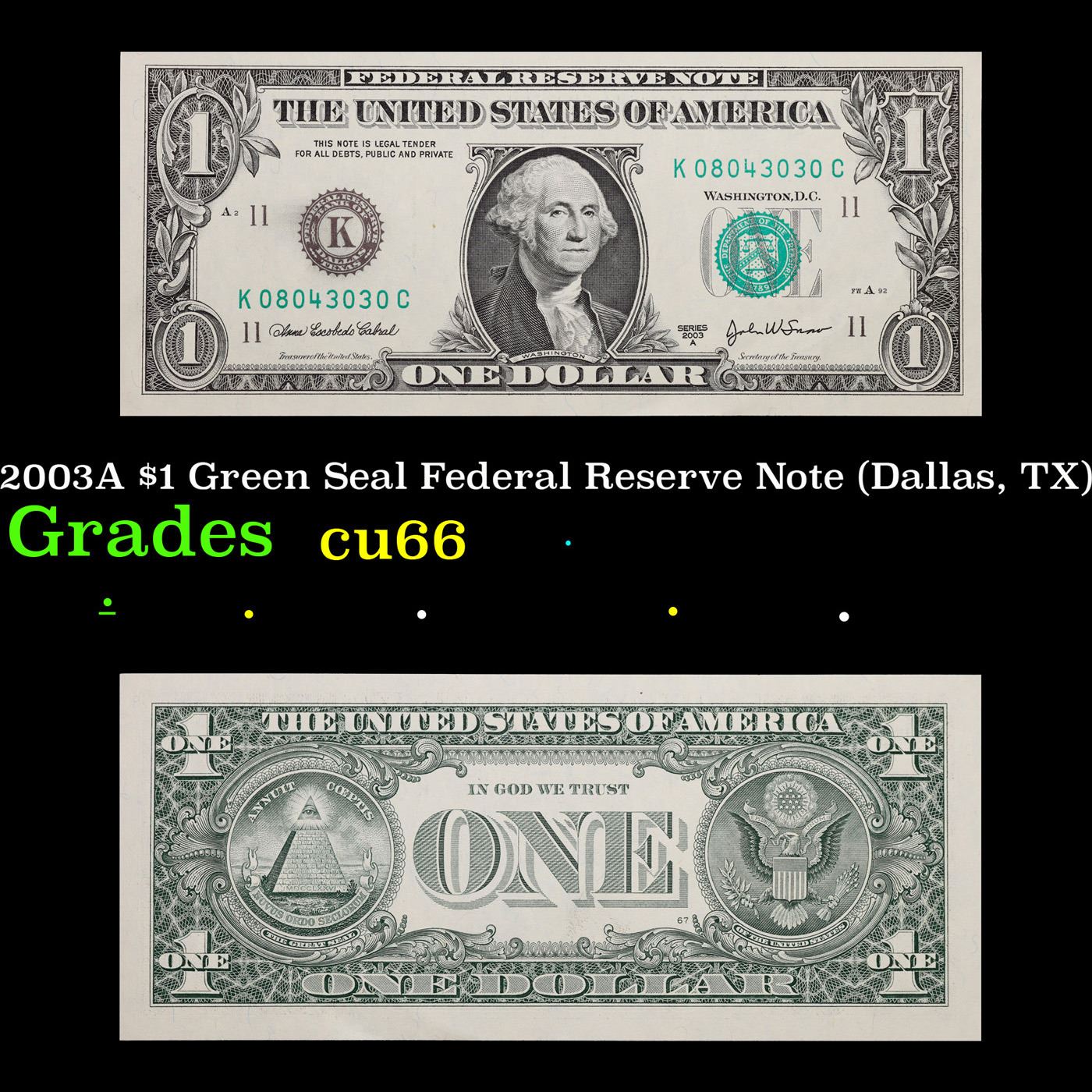 2003A $1 Green Seal Federal Reserve Note (Dallas, TX) Grades Gem+ CU.