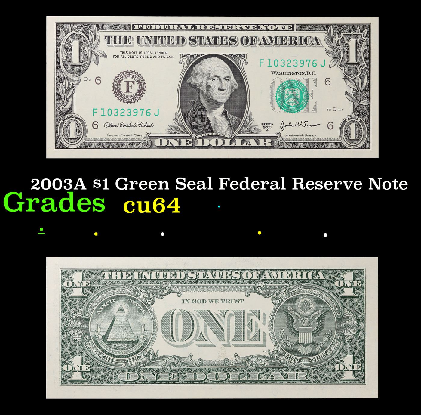 2003A $1 Green Seal Federal Reserve Note Grades Choice CU.