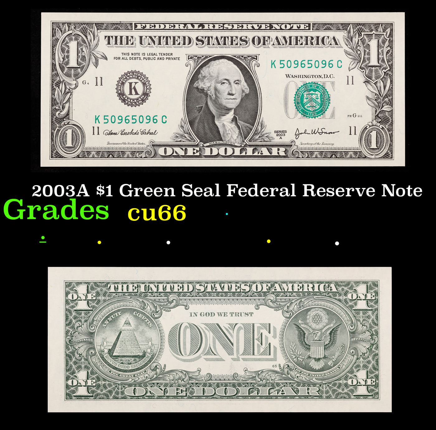2003A $1 Green Seal Federal Reserve Note Grades Gem+ CU.
