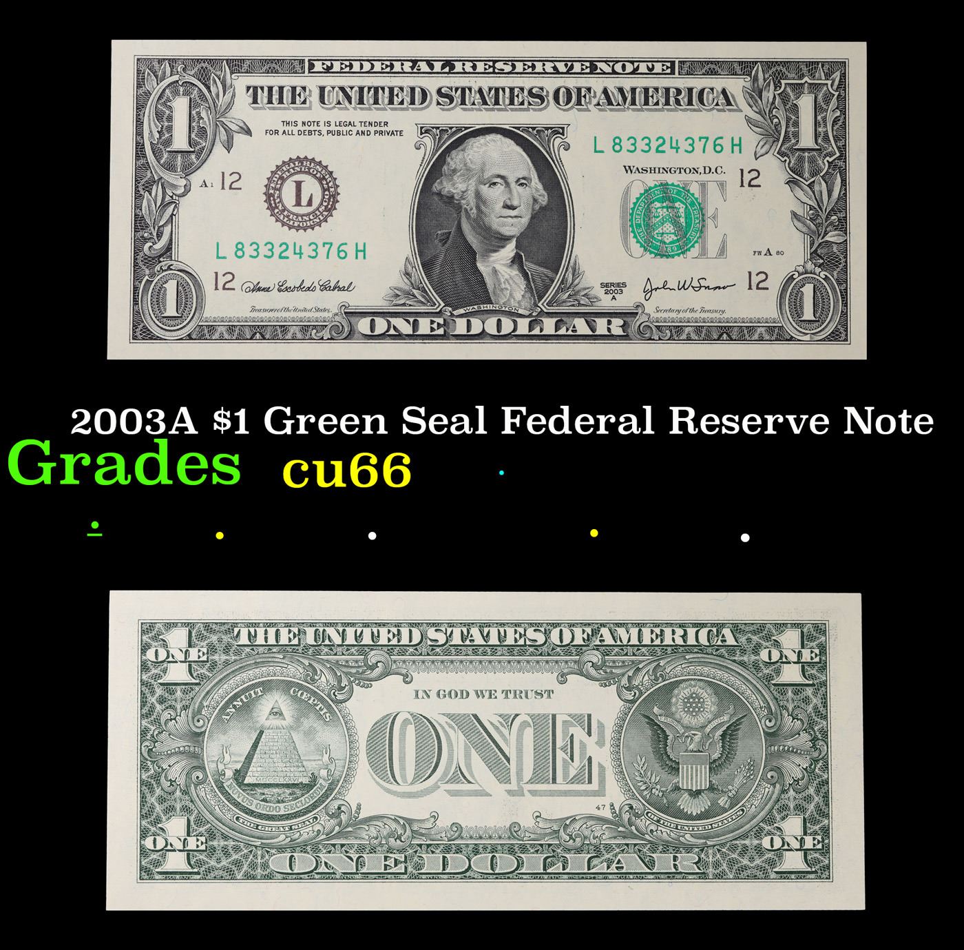 2003A $1 Green Seal Federal Reserve Note Grades Gem+ CU.