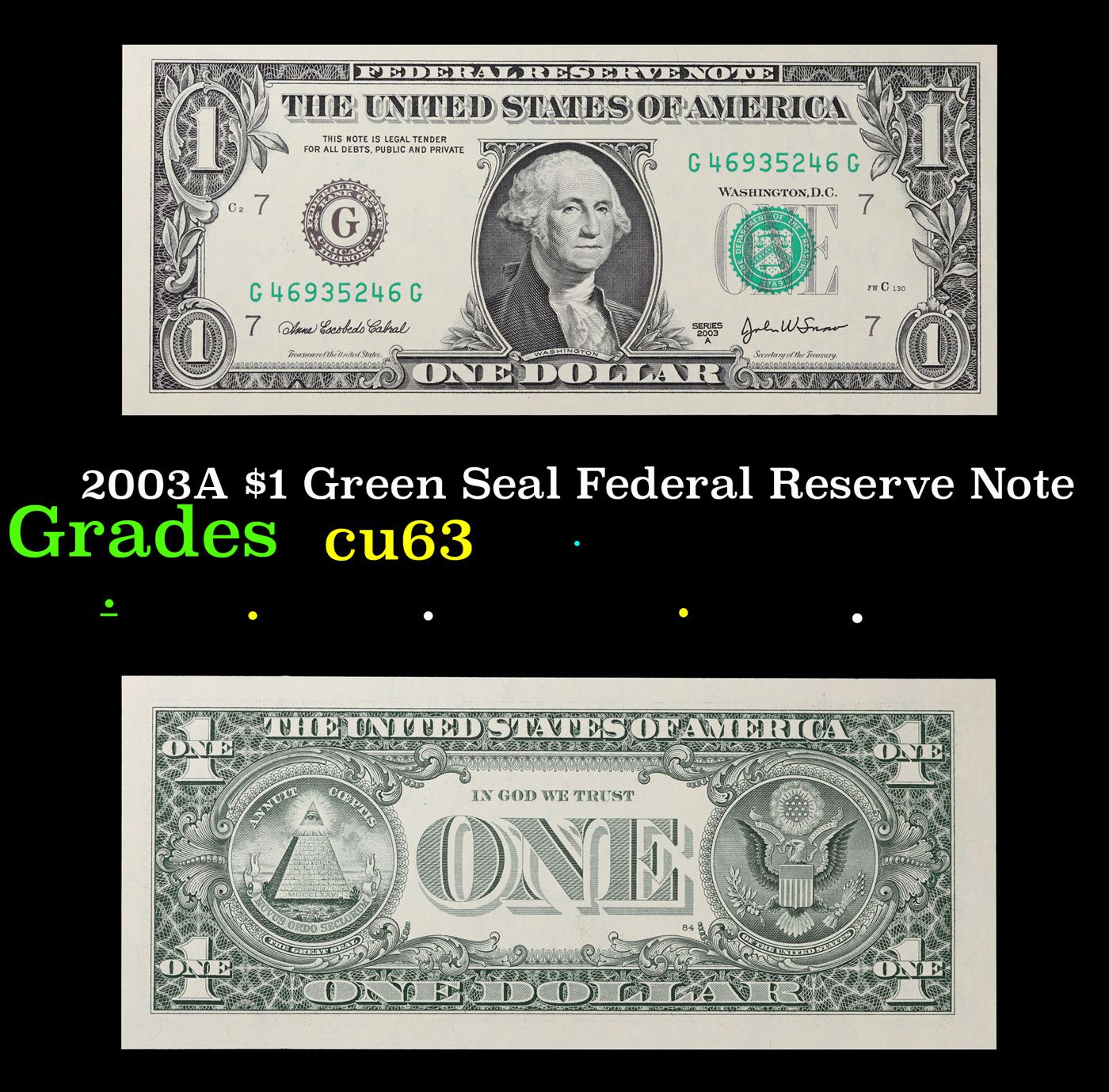 2003A $1 Green Seal Federal Reserve Note Grades Select CU.