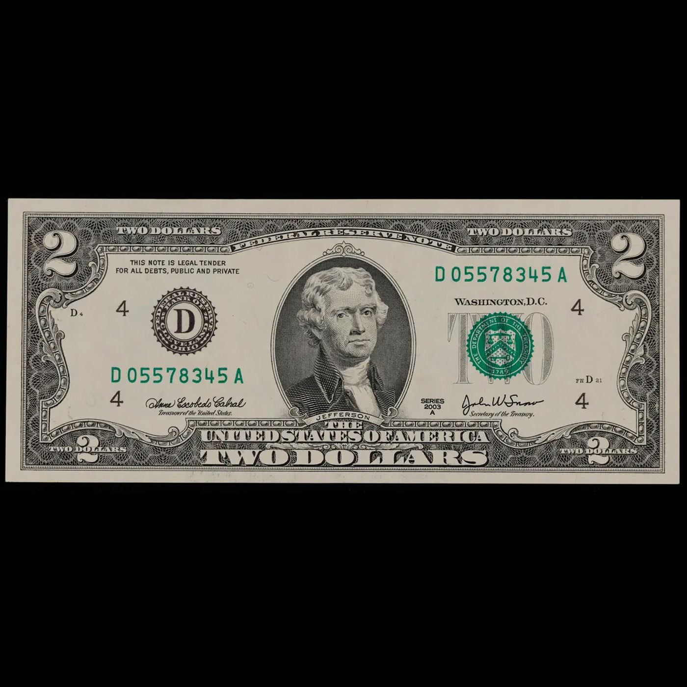 2003A $2 Federal Reserve Note Grades Choice AU/BU Slider.