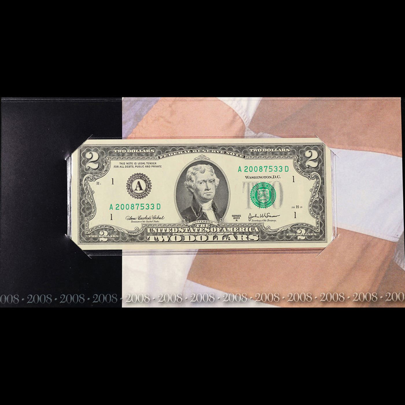 2003A $2 Federal Reserve Note, Uncirculated 2008 BEP Folio Issue (Boston, MA) Grades Gem CU